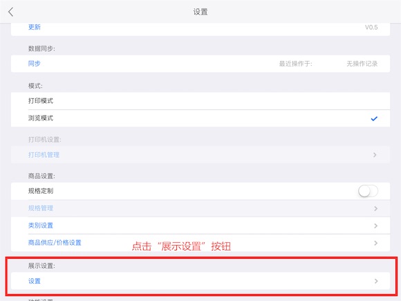 进入设置页面后,滑动至“展示设罝”,点击设置按钮进入展示设置页面。